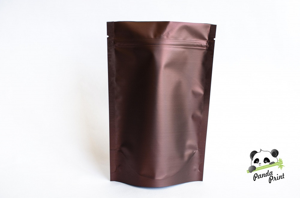 Пакет Дой-пак метал с замком ЗИП-ЛОК 135х200+(40+40), коричневый матовый