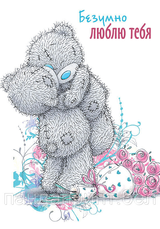 Открытка 70х100 мм Безумно люблю тебя Пара тедди